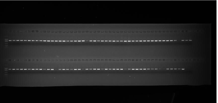 这是北京一企业用户用PCR鉴定阳性植物植株的电泳图,用户表示:该款闪电Mix把PCR时间从以前的100min缩短到30min,大大提高了工作效率,同时省下了准备购置PCR仪的经费,很喜欢!
